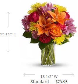 Express yourself colorfully with a brilliant array of roses, lilies and other favorites beautifully arranged in a sparkling clear glass cylinder vase. Perfect for a birthday, anniversary or any happy occasion.