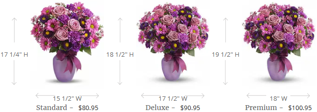 Lavender roses and daisy spray chrysanthemums, purple carnations, miniature carnations, matsumoto asters and pink waxflower are delivered in a sweet lilac vase that's tied with a purple satin ribbon. Love, laugh and send it today!