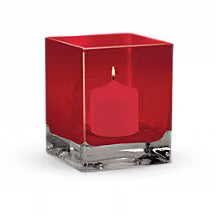 Eighteen pretty red roses with lavender waxflower and greens are delivered in a stunning ruby red cube vase.