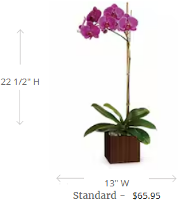 Includes a 4" purple phalaenopsis orchid plant. Delivered in a small Bamboo Cube.