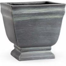 White hydrangea, white roses, white oriental lilies, white snapdragons, and white stock are arranged with huckleberry, seeded eucalyptus, spiral eucalyptus, green ti leaves, and lemon leaf. Delivered in a Modern Heritage Pot.